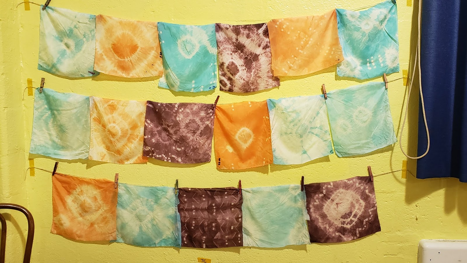 Students were each given a piece of raw silk and then allowed to shibori that silk using a variety of items to create areas of resist - rubber bands, stones, paper clips, hair pins, clothes pins, etc. Then students put their silk in the kool aid dye bath. After about 10 mins, silks were rinsed and students removed their items and saw their gorgeous pieces. Amazing! Some classes dyed twice for a layered color effect, and we will definitely be doing more of that next year.