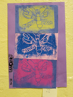 Students first practiced and drew their image on paper, then transferred them onto foam when they were ready. In addition to discussing terminology and procedures for pulling a print, we discussed color combinations to accentuate the lines. Students had a wonderful time!